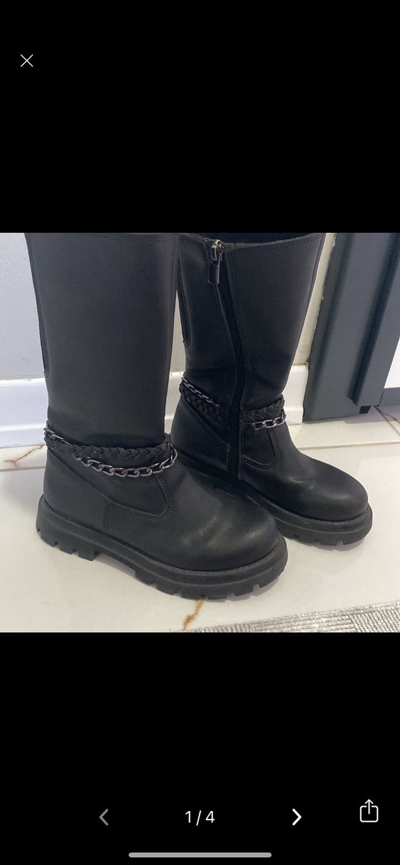 Zincir Detaylı Siyah Deri Kız Çizmesi