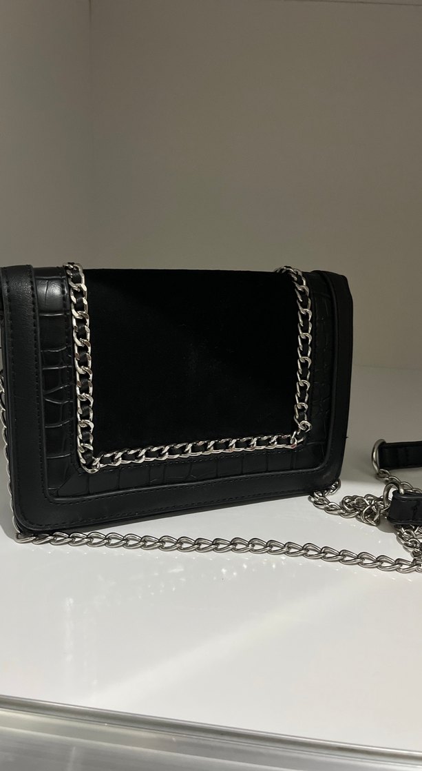 Zincir Detaylı Siyah Deri Yılan Desenli Çanta