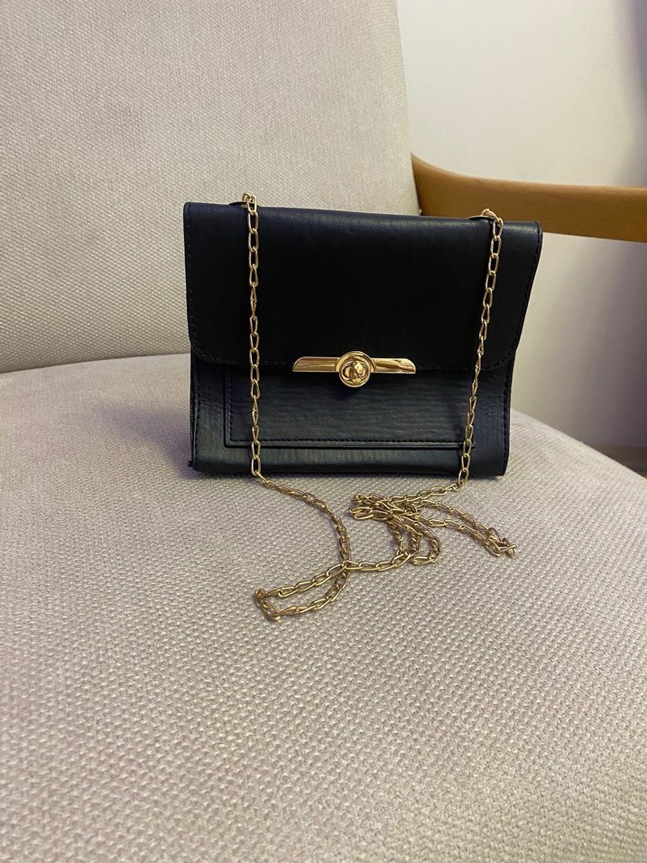 Siyah deri yılan desenli çanta, altın renk zincir detaylı. Paris tarzı ve modern klasik şıklığı bir arada sunar.