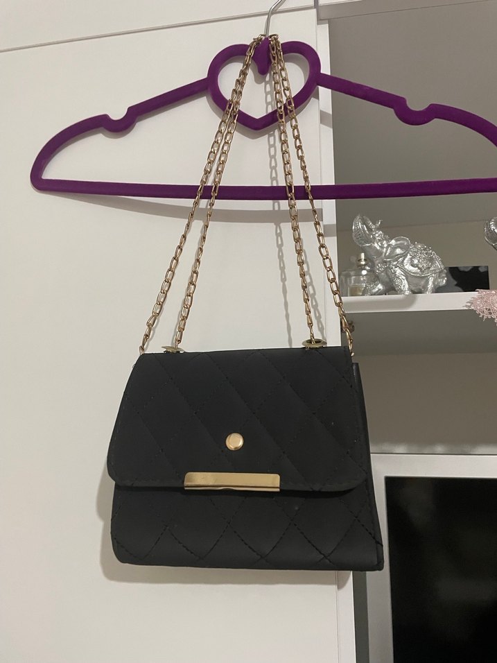 Zincir Detaylı Siyah Deri Yılan Desenli Çanta