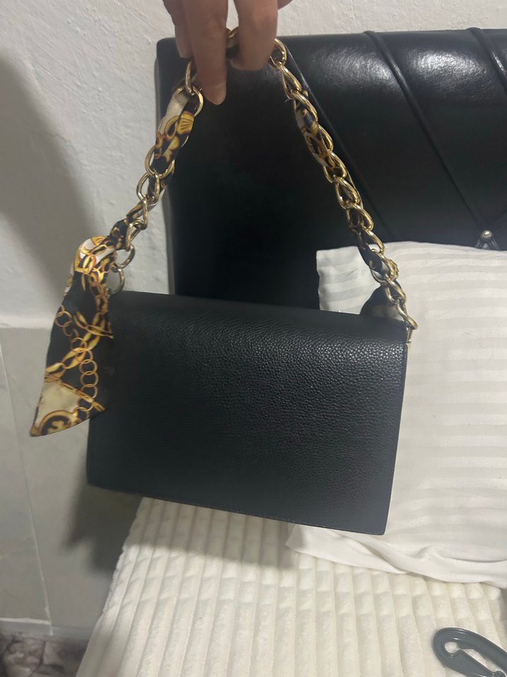 Zincir Detaylı Siyah Deri Yılan Desenli Kadın Çanta