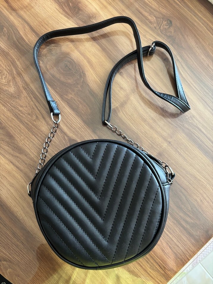 Zincir Detaylı Siyah Deri Yuvarlak Çanta