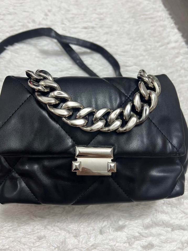 Siyah suni deri çanta isteğe göre uzun kulbu çıkarıp zincir Kısmından tutarak eldede kullanabilirsiniz 1-2 defa kullanıldı deformesi yok.