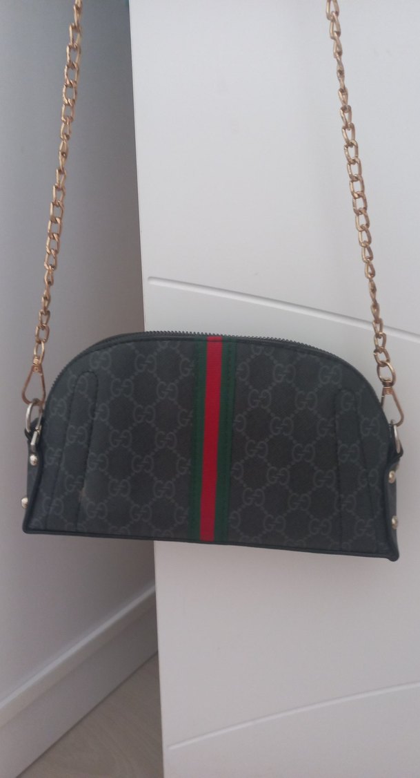 siyah desenli, zincir askılı sentetik kumaş kadın çantası, trend sokak tarzına uygundur. zincir rengi biraz soluk