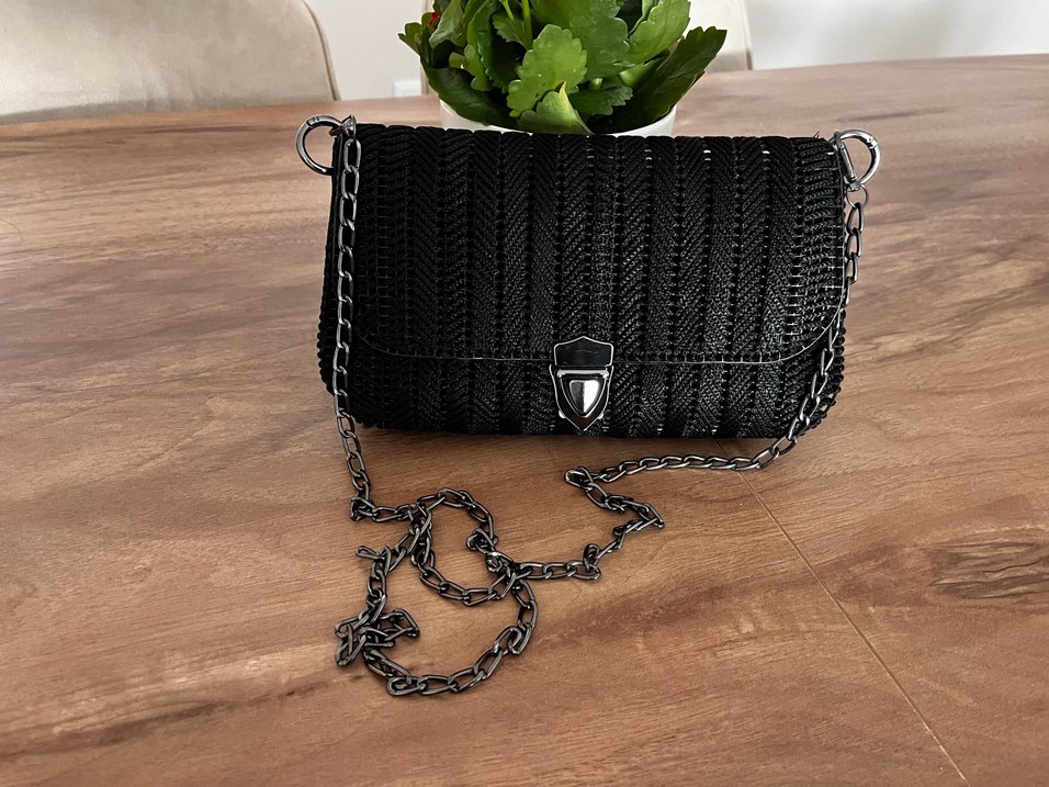 Zincir Detaylı Siyah El Yapımı Kadın Çanta