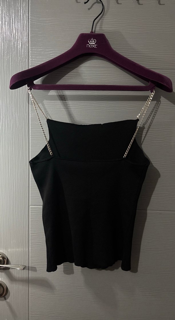 Zincir detaylı siyah gotik kadın body, cesur ve desensiz tasarımıyla günlük kullanıma uygun.