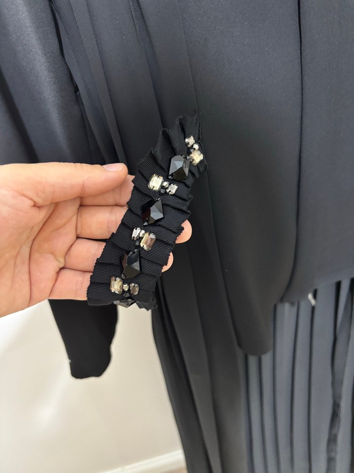 Zincir detaylı, işlemeli siyah kadın el zinciri, gotik ve avangart tarzda, özel günleriniz için uygun.