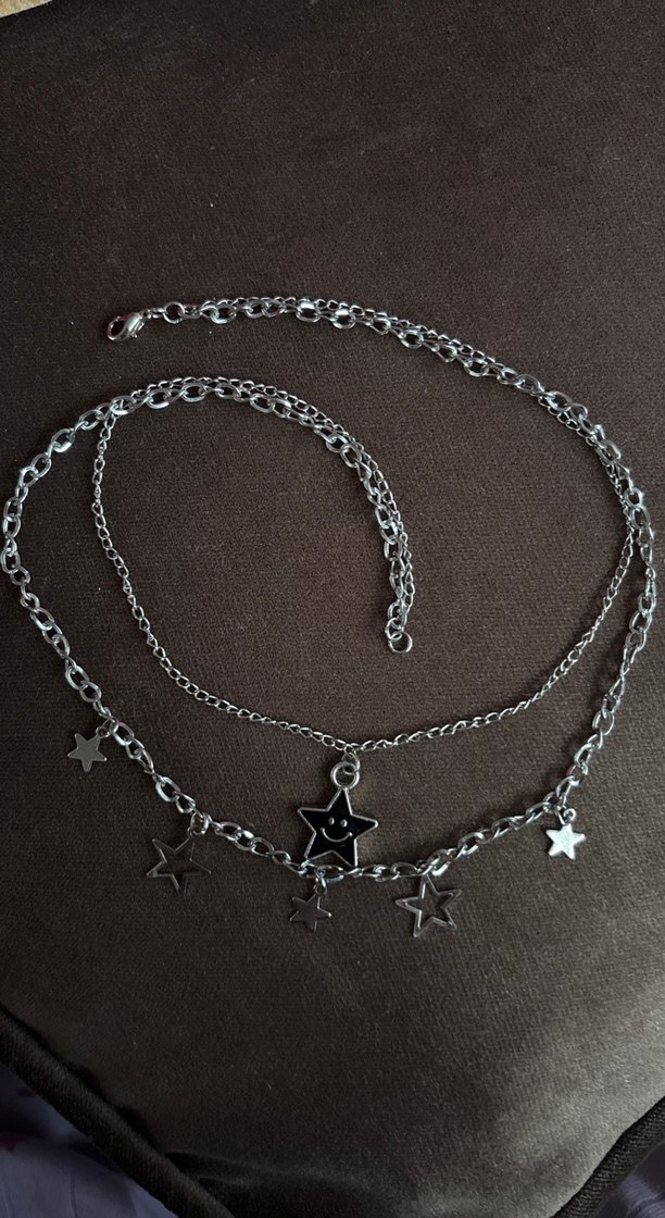 Zincir detaylı, yıldız figürlü siyah gotik midi kolye. Nakışlı yıldız figürü ve rock punk havasıyla günlük kullanıma uygun.