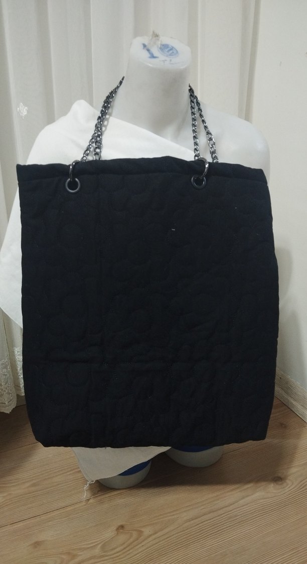 Zincir detaylı, siyah renkte, düz desenli ve sentetik kumaştan üretilmiş kadın çantasıdır. Günlük kullanıma uygundur.