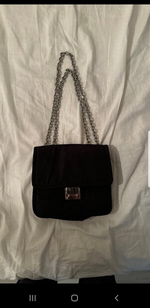 Zincir detaylı, siyah renkte klasik ve zarif tarza sahip kadın çantası. Sentetik kumaştan üretilmiş, günlük kullanıma uygun gotik Paris tarzı.