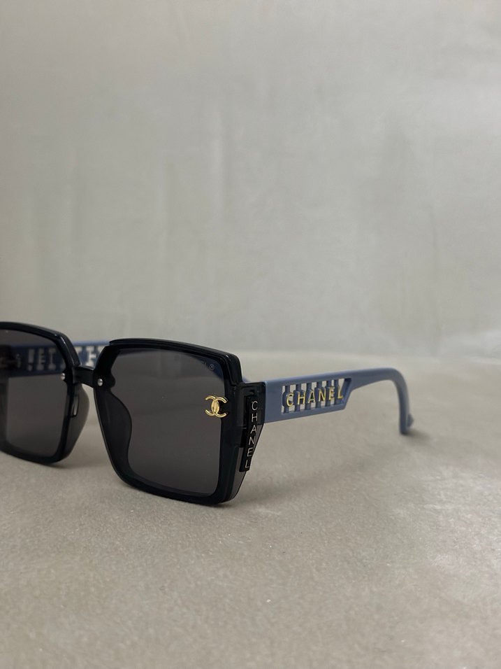 Zincir detaylı, klasik kare tasarımlı siyah kadın güneş gözlüğü. Yanlarda altın renkli ince detaylar bulunur. ️