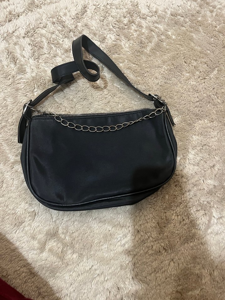 Zincir detaylı siyah dalgıç kumaş? kadın çantası, minimalist tasarıma sahip, günlük kullanım ve sokak modasına uygun.