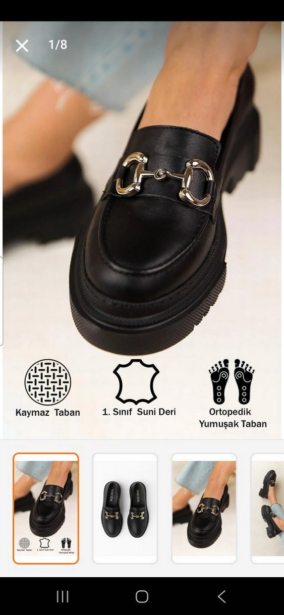 Zincir detaylı, blok topuklu siyah kadın loafer. 1. sınıf suni deriden, ortopedik, yumuşak ve kaymaz tabanlı, günlük sokak stiline uygun.