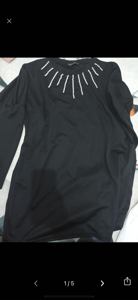 Uzun kollu, bisiklet yaka ve bol kesimli siyah kadın sweatshirtü. Yakada zincir detayları ve minimal baskı deseni bulunur. Sentetik kumaştan üretilmiştir.