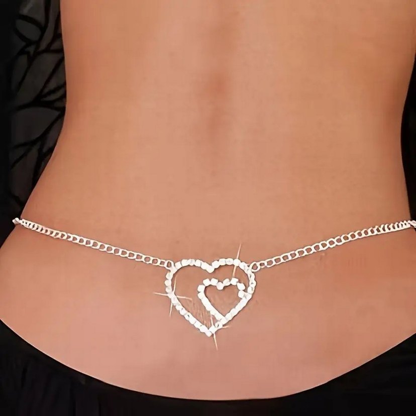 Romantik gece için minimalist gotik tarzda, kalp şekilli zincir detaylı siyah kadın vücut zinciri. Ürünümüz hiç kullanılmamıştır. Diğer ürünlerimize bakmayı unutmayınız