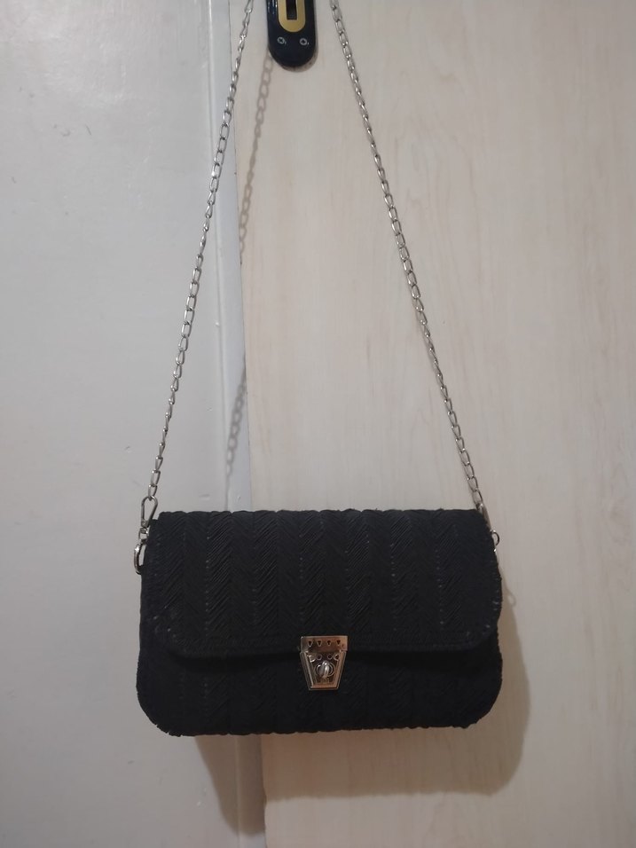 Zincir Detaylı Siyah kanvas canta el yapımidir