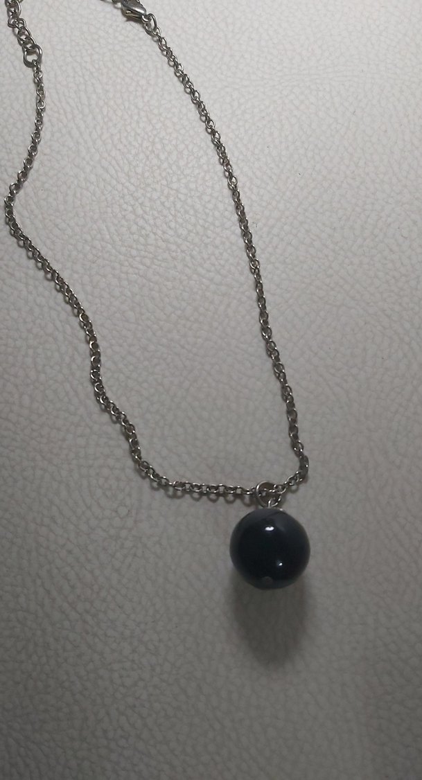 Zincir detaylı, siyah top şeklinde uçlu midi uzunlukta kolye, sade ve gotik tarzda günlük kullanıma uygun.