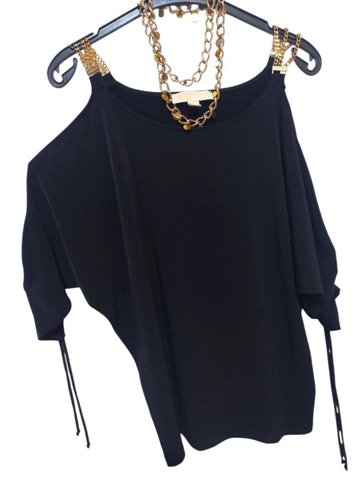 Zincir Detaylı Siyah Mini Bluz