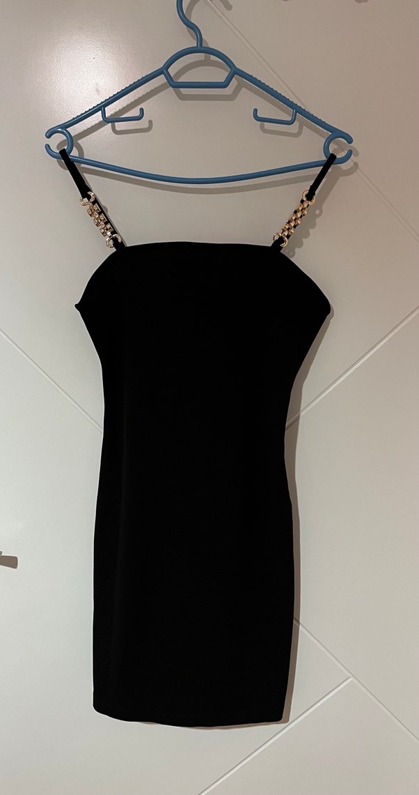 Zincir detaylı askılı, halter yaka siyah mini elbise,hiç giyilmedi.Özel günler icin uygundur.