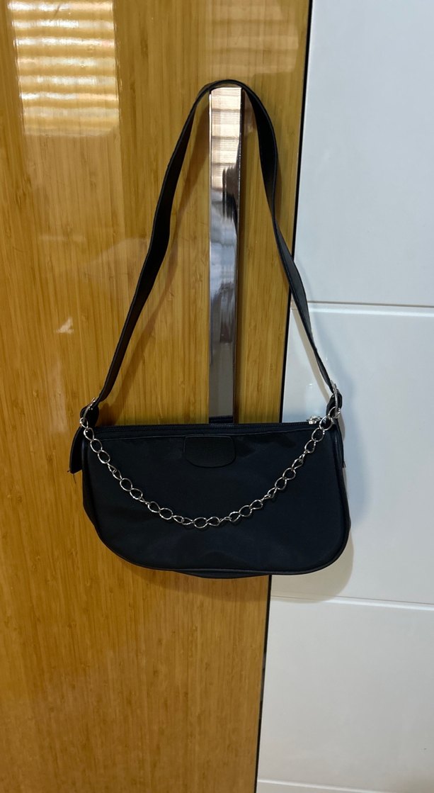 Zincir Detaylı Siyah Minimalist Deri Çanta