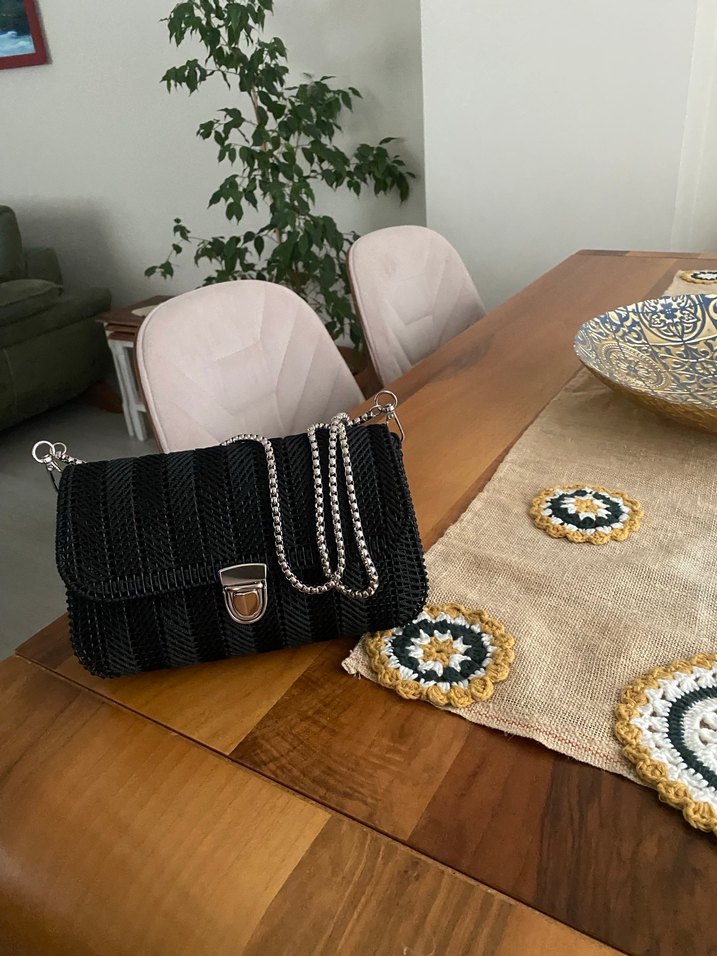 Zincir Detaylı Siyah Örgü Kadın Çanta