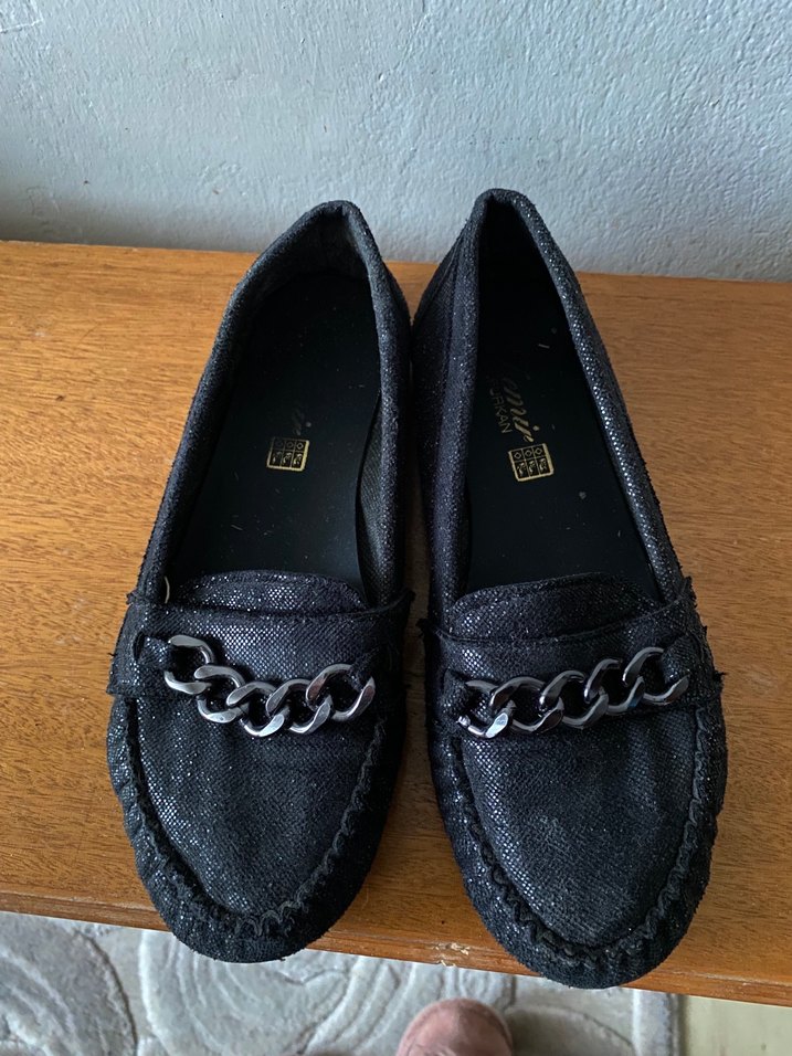Zincir Detaylı Siyah parıltılı babet