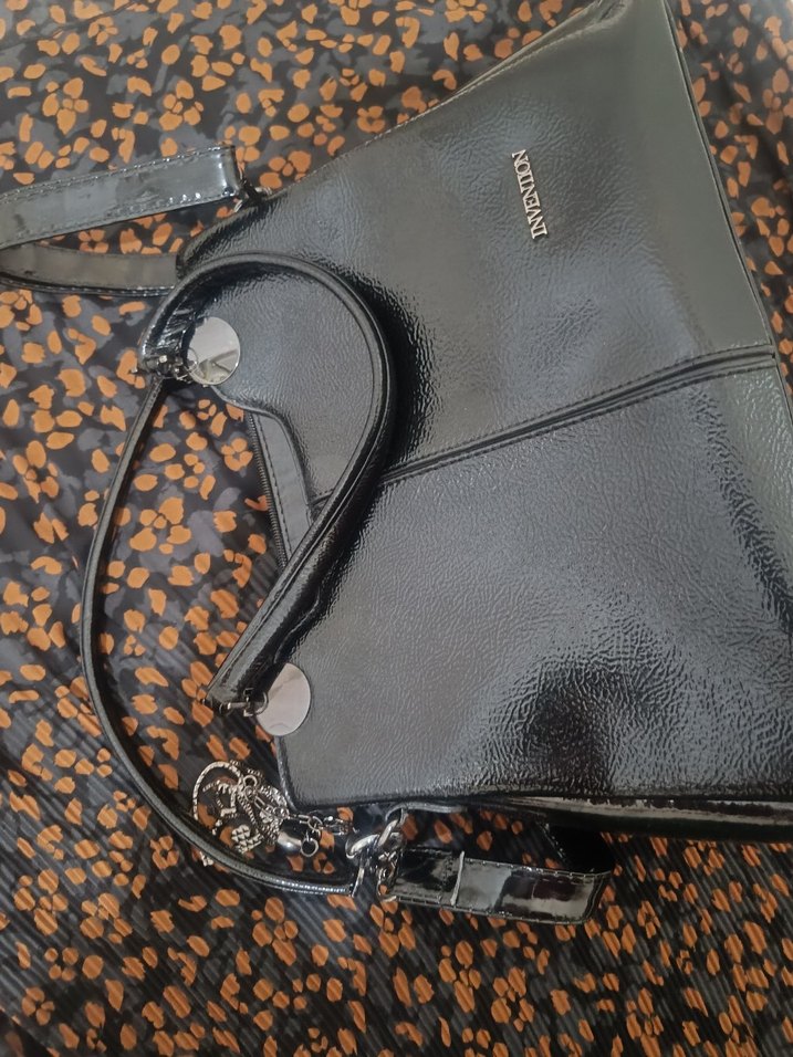 Zincir Detaylı Siyah Parlak Deri Kadın Çanta