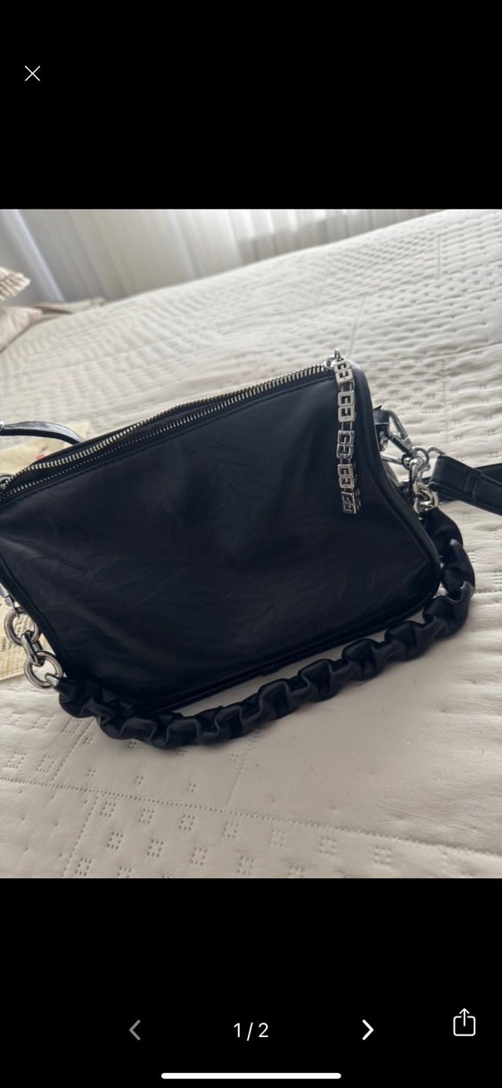 Zincir Detaylı Siyah Parlak Deri Kadın Çanta
