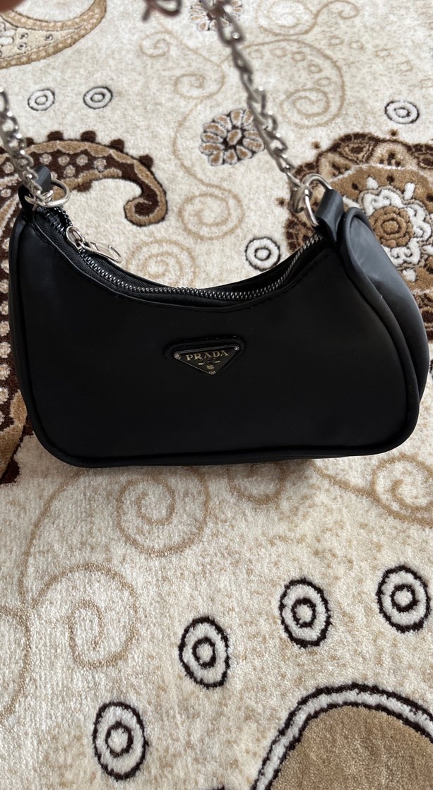Zincir Detaylı Siyah Prada Deri Çanta