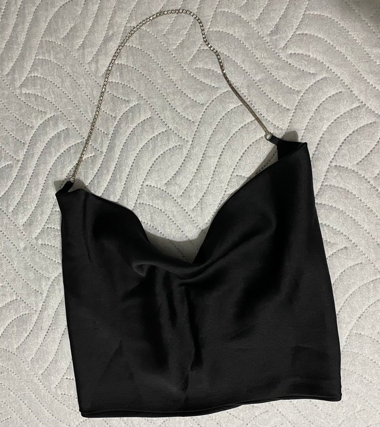Zincir Detaylı Siyah saten bustiyer