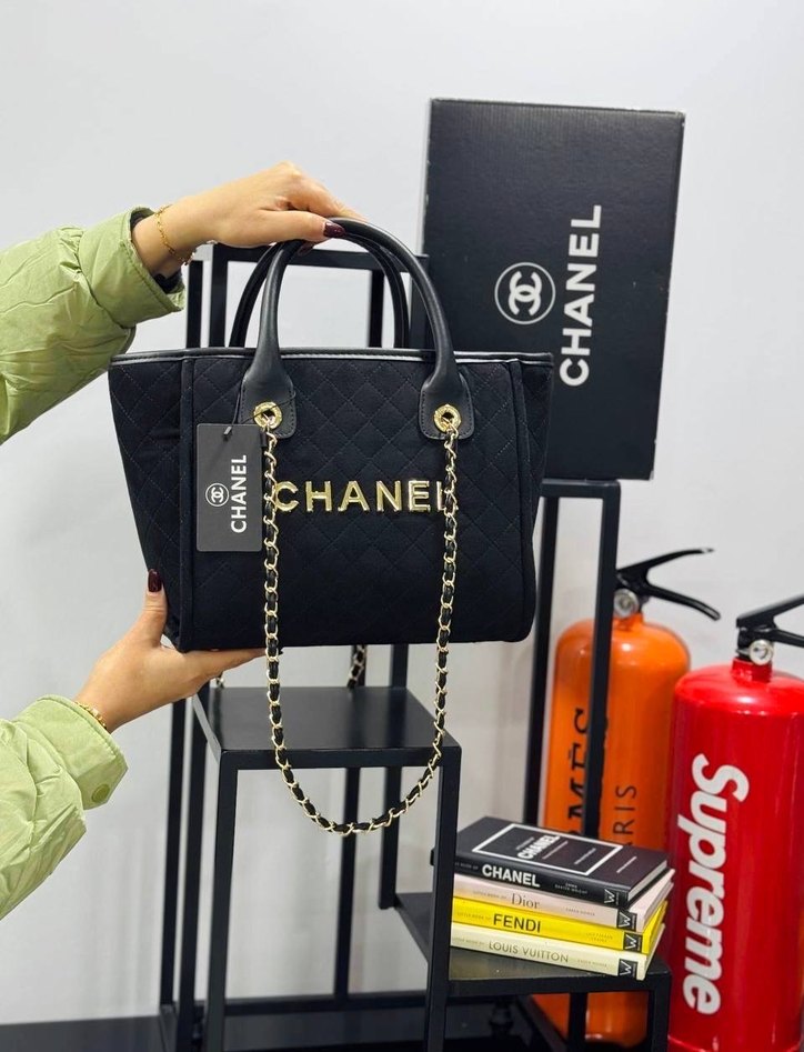 Önünde marka yazısı bulunan parlak zincir detaylı, baskılı yüzeyli siyah süet kadın çantası. Trend sokak stili için uygun. Chanel Shoulder Bag Suede Material A Kalite ➡️28 Cm ⬆️25 Cm