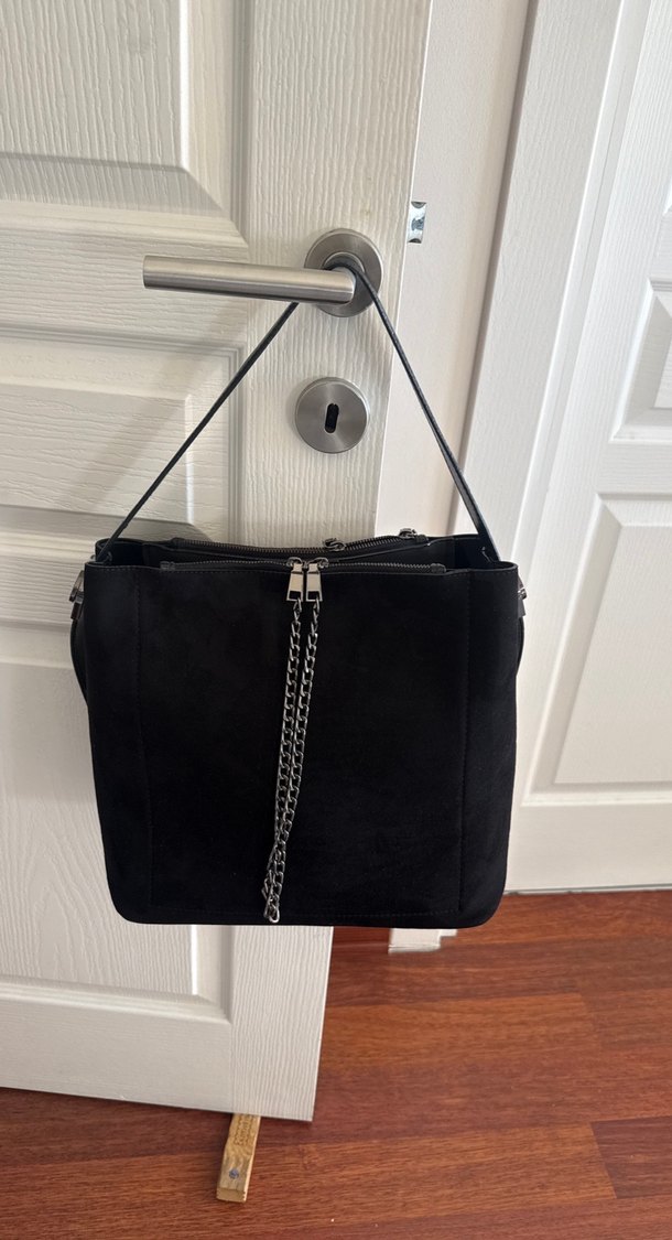 Zincir Detaylı Siyah Süet Kadın Çanta