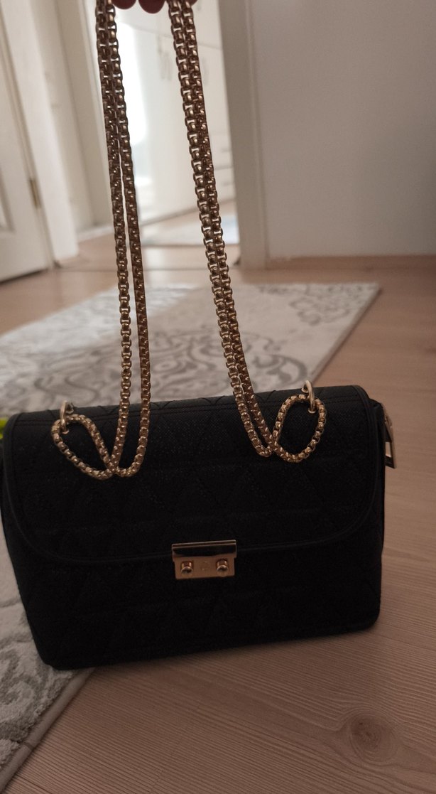 Yılan desenli dokusu ve altın renk zincir detaylarıyla siyah süet kadın çantası, klasik zarafet ve sokak stili birleşimi.az kullanıldı tertemiz