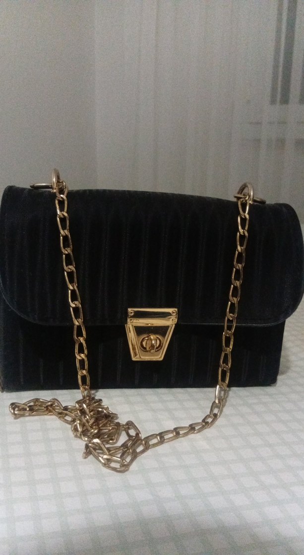 Siyah süet kumaştan yapılmış, parlak altın zincir ve kilit detaylı, gotik ve Paris tarzını yansıtan kadın çantası.