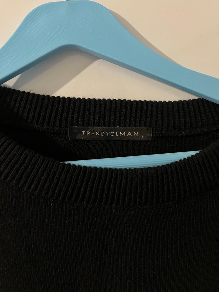 Trendyol man Sentetik kumaştan, zincir detaylı, bisiklet yaka ve uzun kollu, siyah renkli, dar kesim kadın triko.