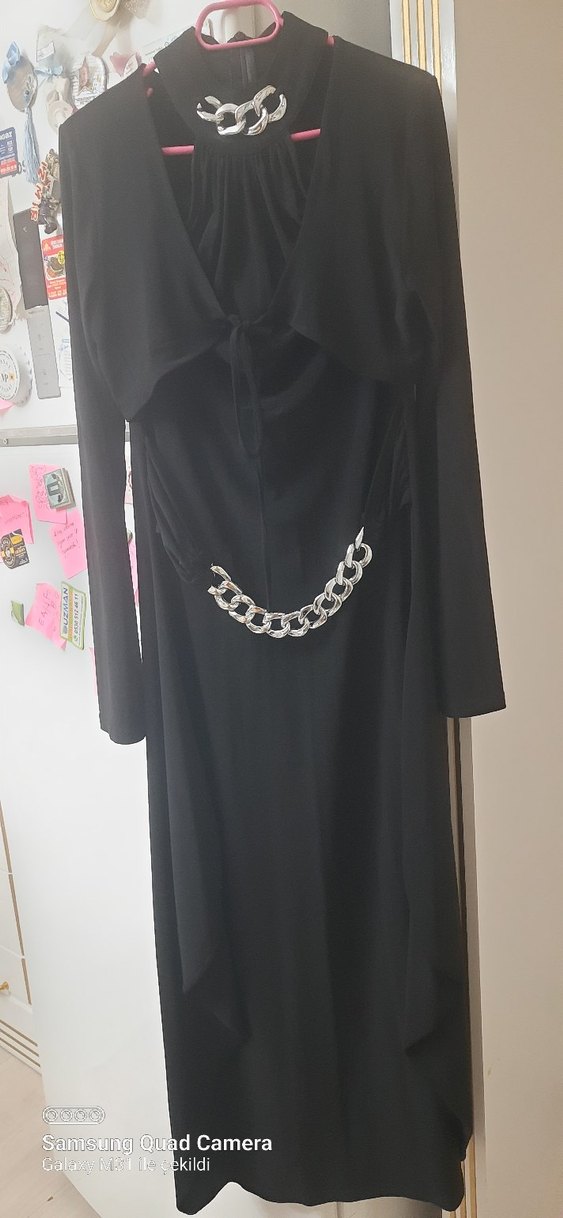 Zincir Detaylı Siyah Uzun Kadın Elbise