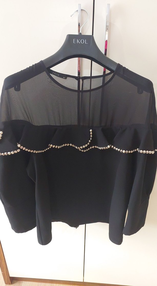 Siyah, uzun kollu, zincir detaylı ve normal boyda bluz. Parlak, satenimsi kumaşıyla gotik ve avangart tarzı yansıtır. Günlük kullanıma uygundur.