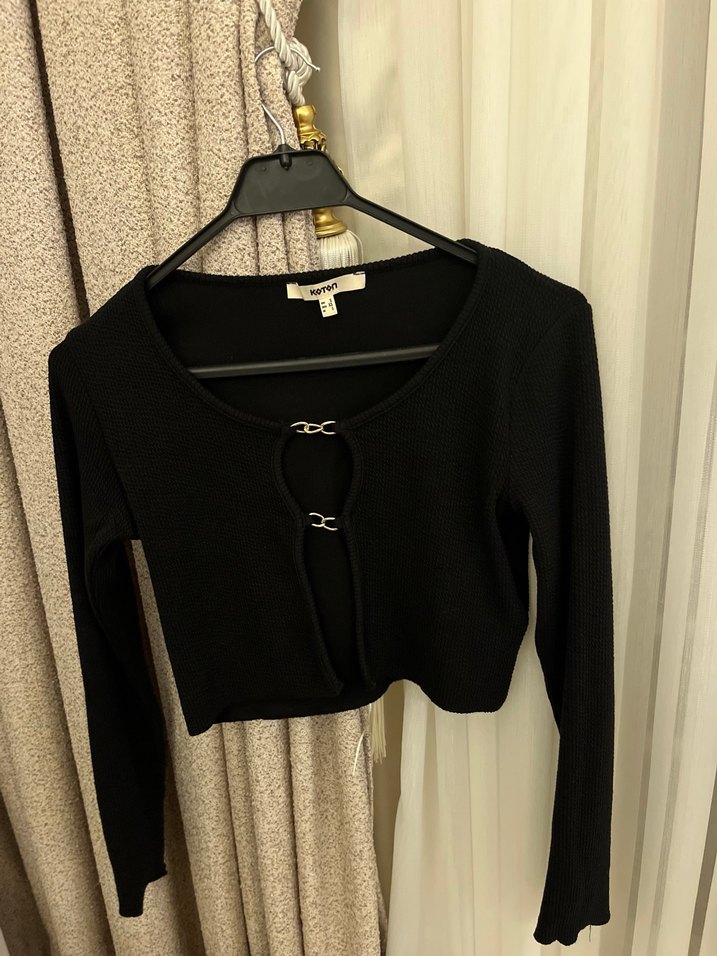 Zincir Detaylı Siyah Uzun Kollu Crop Bluz