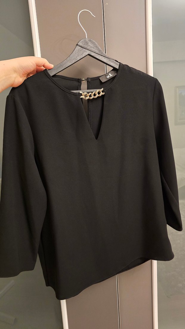 Zincir detaylı V yakalı, uzun kollu siyah gömlek adL marka hatasız m beden