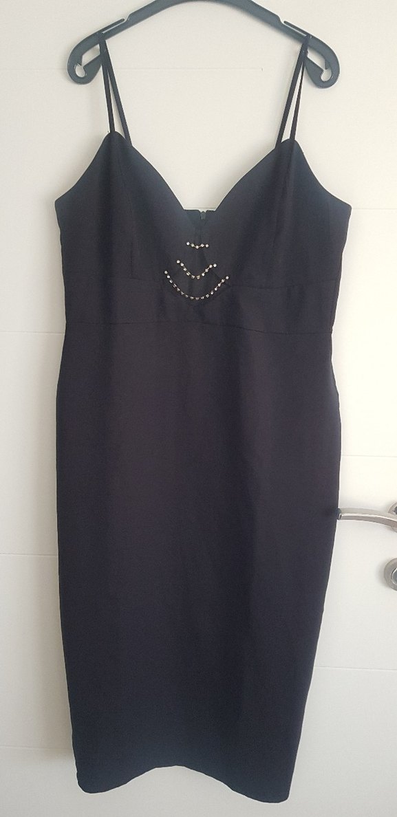 Bu siyah, v yaka ve kolsuz uzun elbise, zincir detaylarıyla cesur gotik bir tarz sunar. Romantik akşamlar için uygundur.