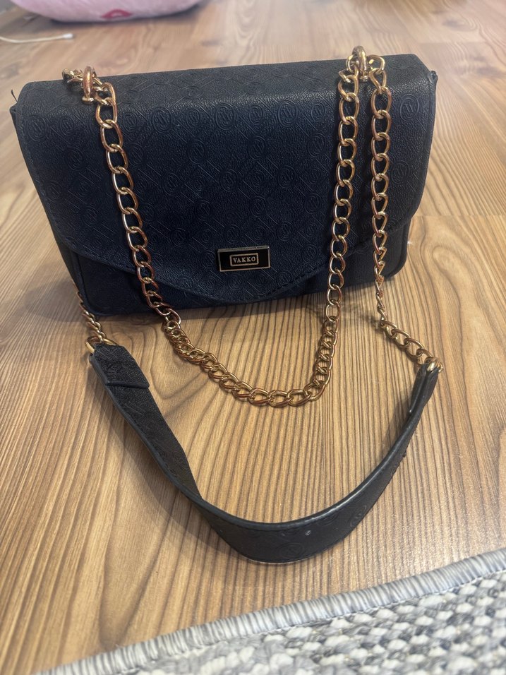 Zincir Detaylı Siyah Vakko Çanta