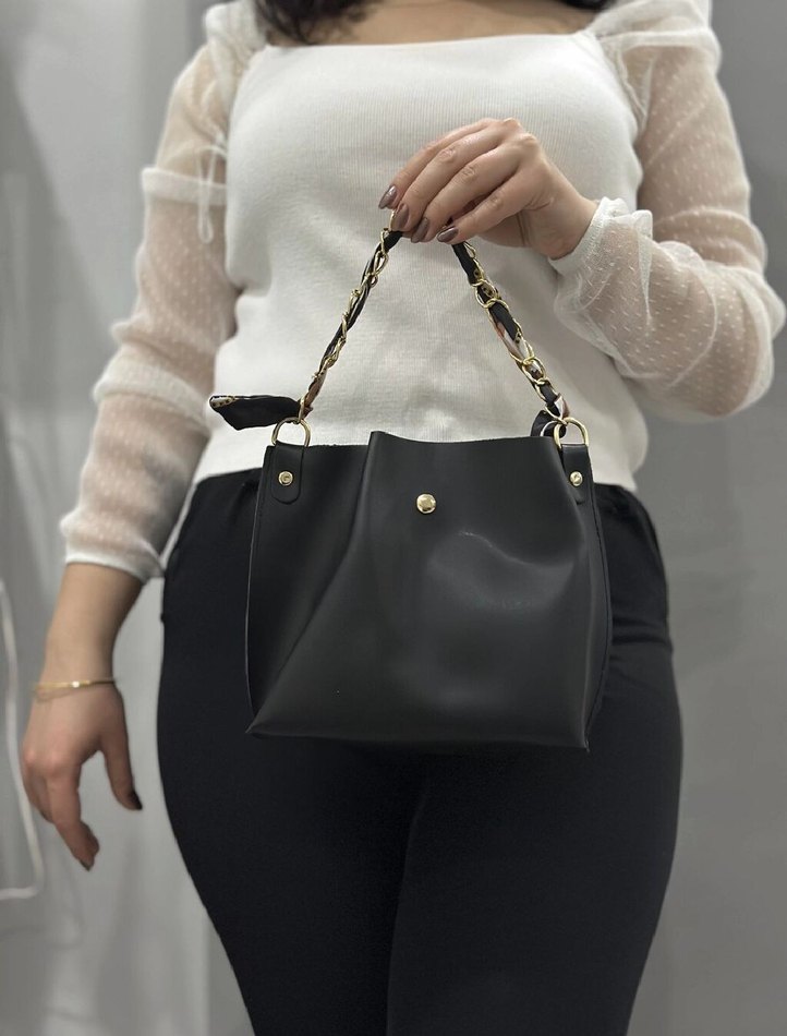 Günlük sokak stiline uygun, zincir saplı siyah yılan derisi desenli deri çanta.