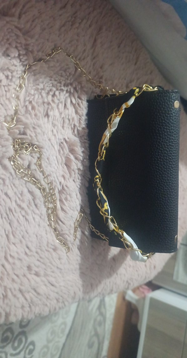 Zincir Detaylı Siyah Yılan Derisi Desenli Deri Çanta