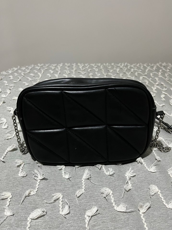 Zincir Detaylı Siyah Yılan Desenli Deri Çanta