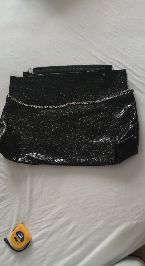 Yılan desenli siyah deri çanta, zincir detaylı ve gotik stile sahip, günlük kullanıma uygun. tek bölmeli içte bir fermuarli cep deteyli boy 34cm en 48cm