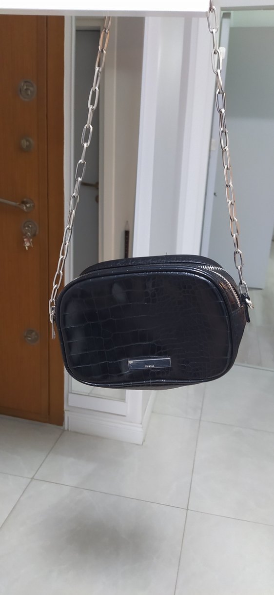 Zincir Detaylı Siyah Yılan Desenli Deri Çanta