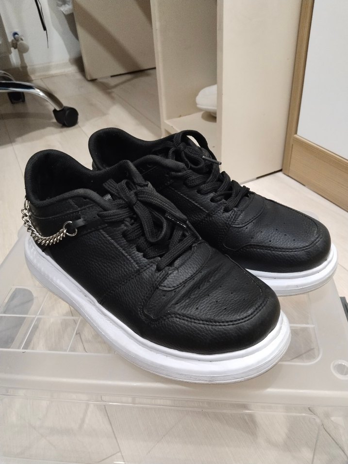 Zincir Detaylı Siyah Yılan Desenli Kadın Spor Ayakkabı