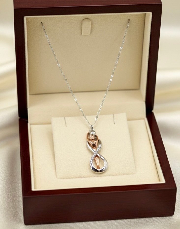Zincir detaylı, hafif rose renkli sonsuzluk deseni kolye, günlük kullanım için minimalist ve çağdaş tarzda, midi uzunlukta klasik zarafet sunar.