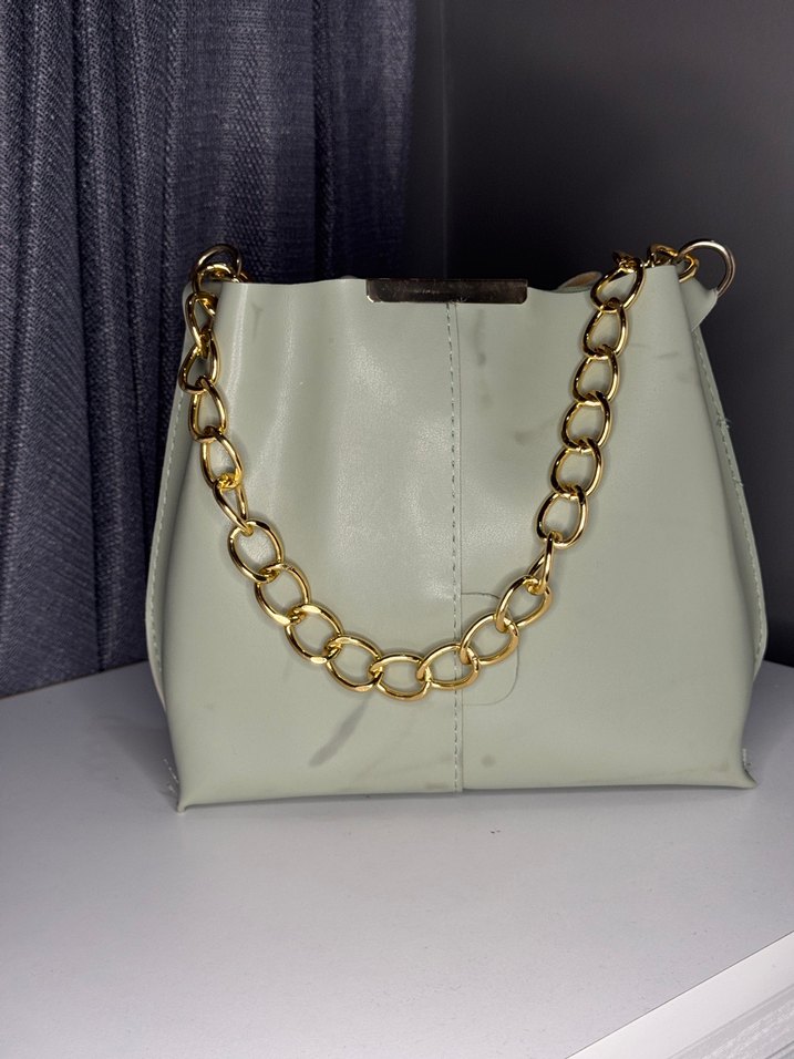 Zincir Detaylı Su Yeşiki Deri Kadın Çanta