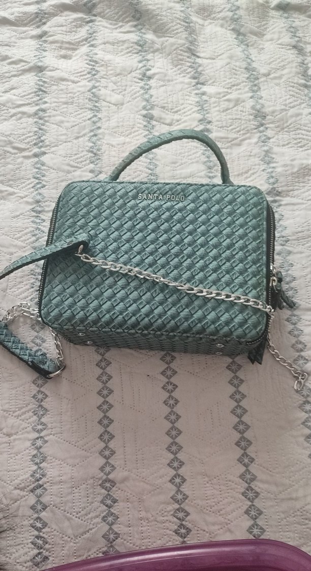 Turkuaz yılan desenli sentetik kumaştan, zincir detaylı kadın çanta. Günlük kullanıma uygun bohem tarzda. çok tarz ve kaliteli bir çanta ancak zincir aparatı kopuk, yaptırıp takarım veya sadece elde kullanırım diyenler için.